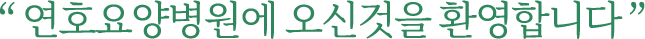 저희 연호요양병원은 항상 여러분의 곁에서 힘이 되어 드리겠습니다.