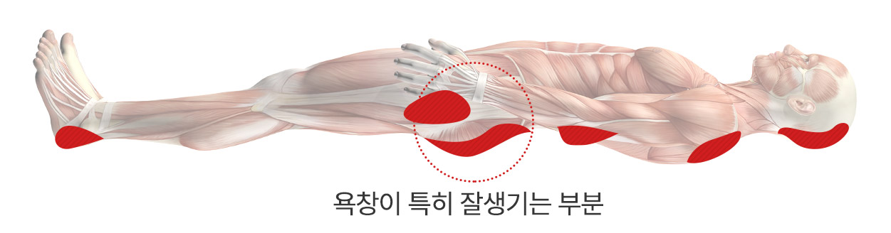 우리 몸의 어느 부위든 지속적인 또는 반복적인 압박이 주로 뼈의 돌출부에 가해짐으로써