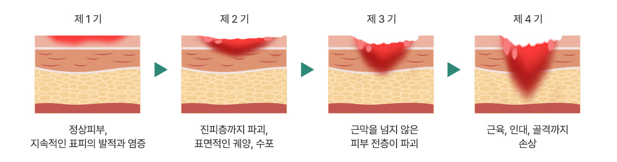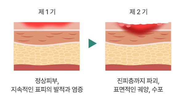 압력이 해소되면 바로 원상태로 회복되지만 압력이 지속되고 반복되면 혈액순환 장애가 생겨 조직에 돌이킬 수 없는 변화가 초래됩니다.